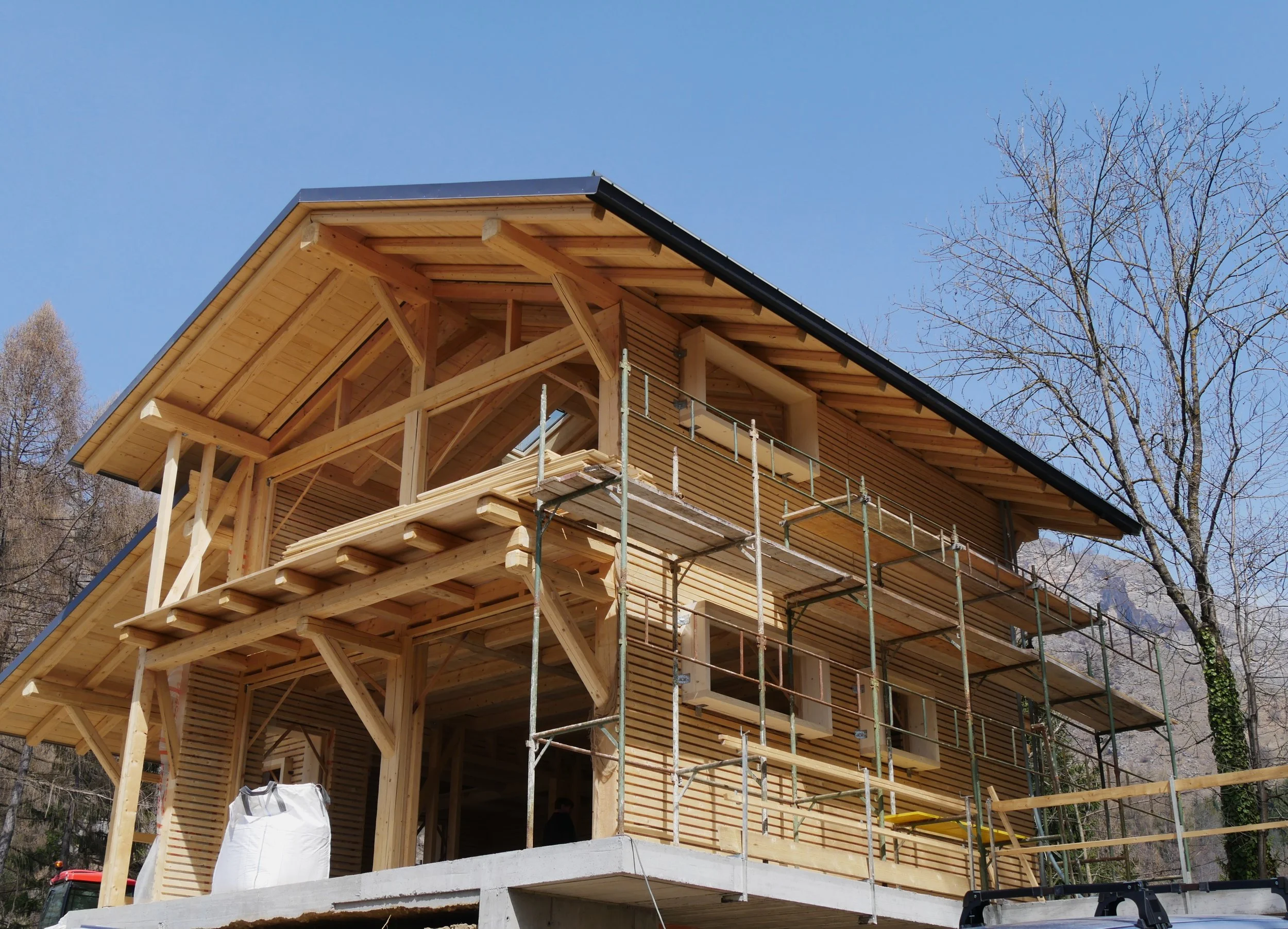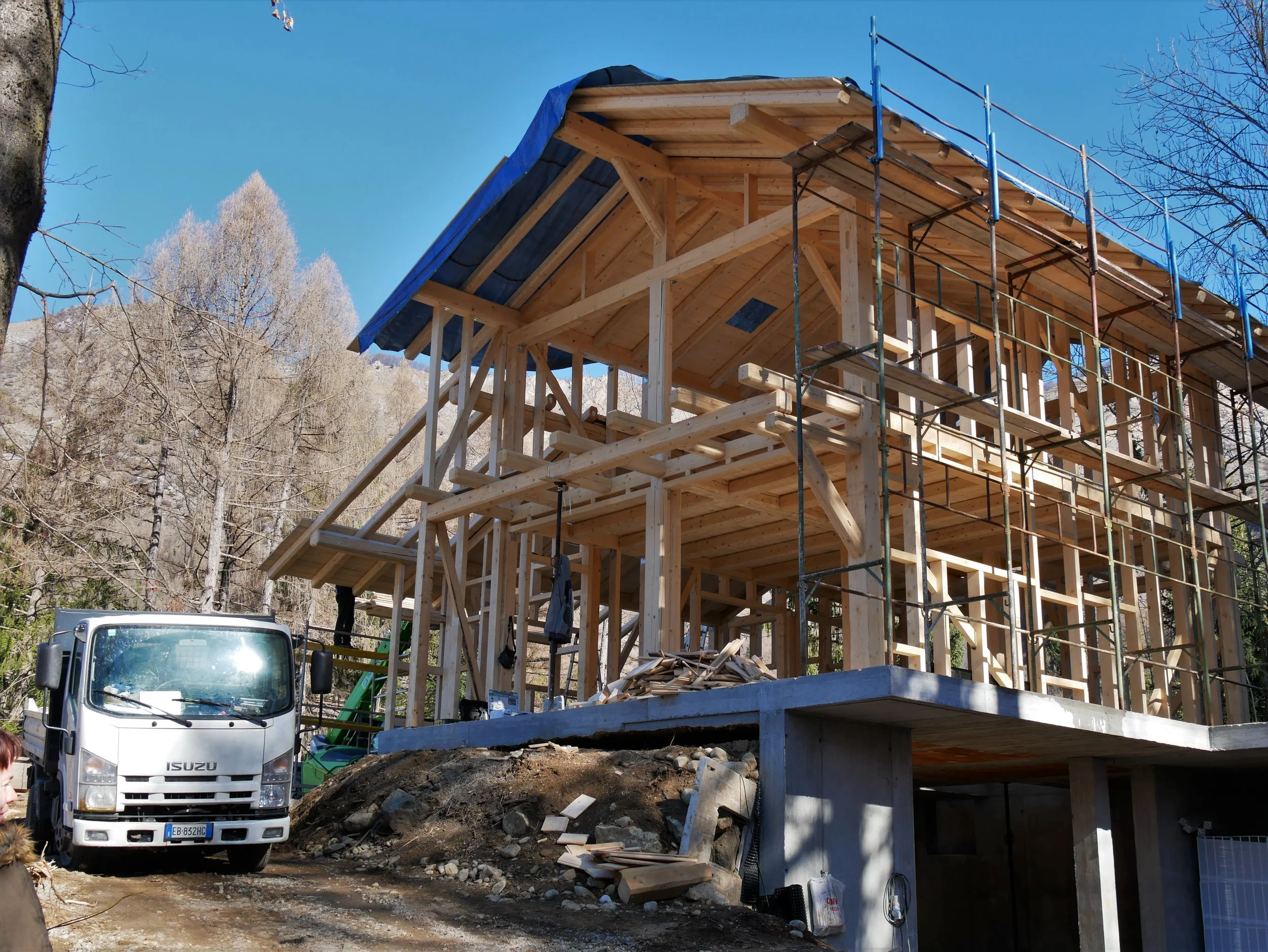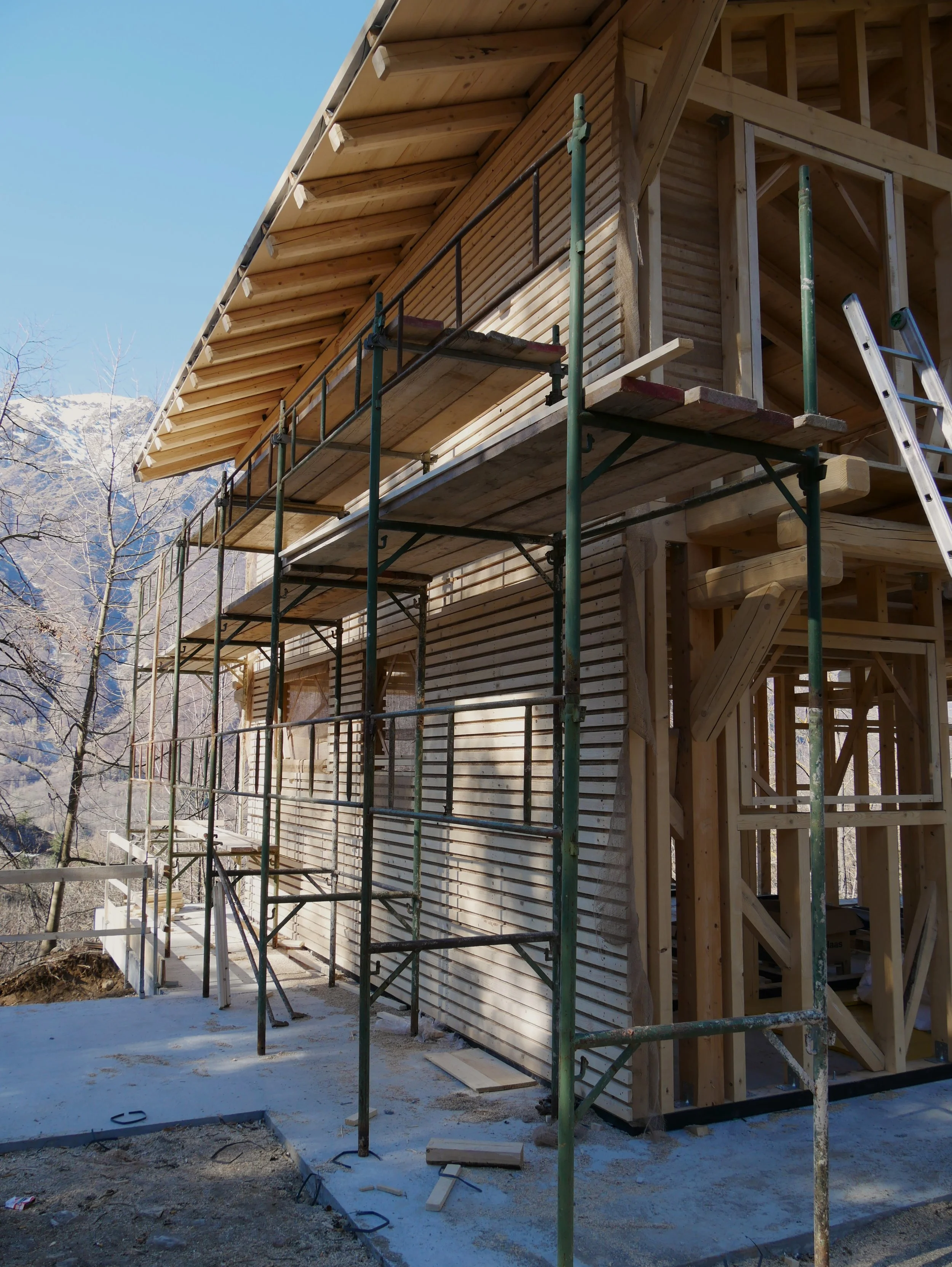 L’intervento utilizzerà materiali naturali: la copertura con travature e tavole in legno di larice come da tipologia del fabbricato esistente, la muratura in pietra nelle pareti laterali e nel lato ovest dell’ampliamento, in intonaco di calce nelle pareti a nord, con tavolato in larice per la facciata a sud e grandi vetrate.