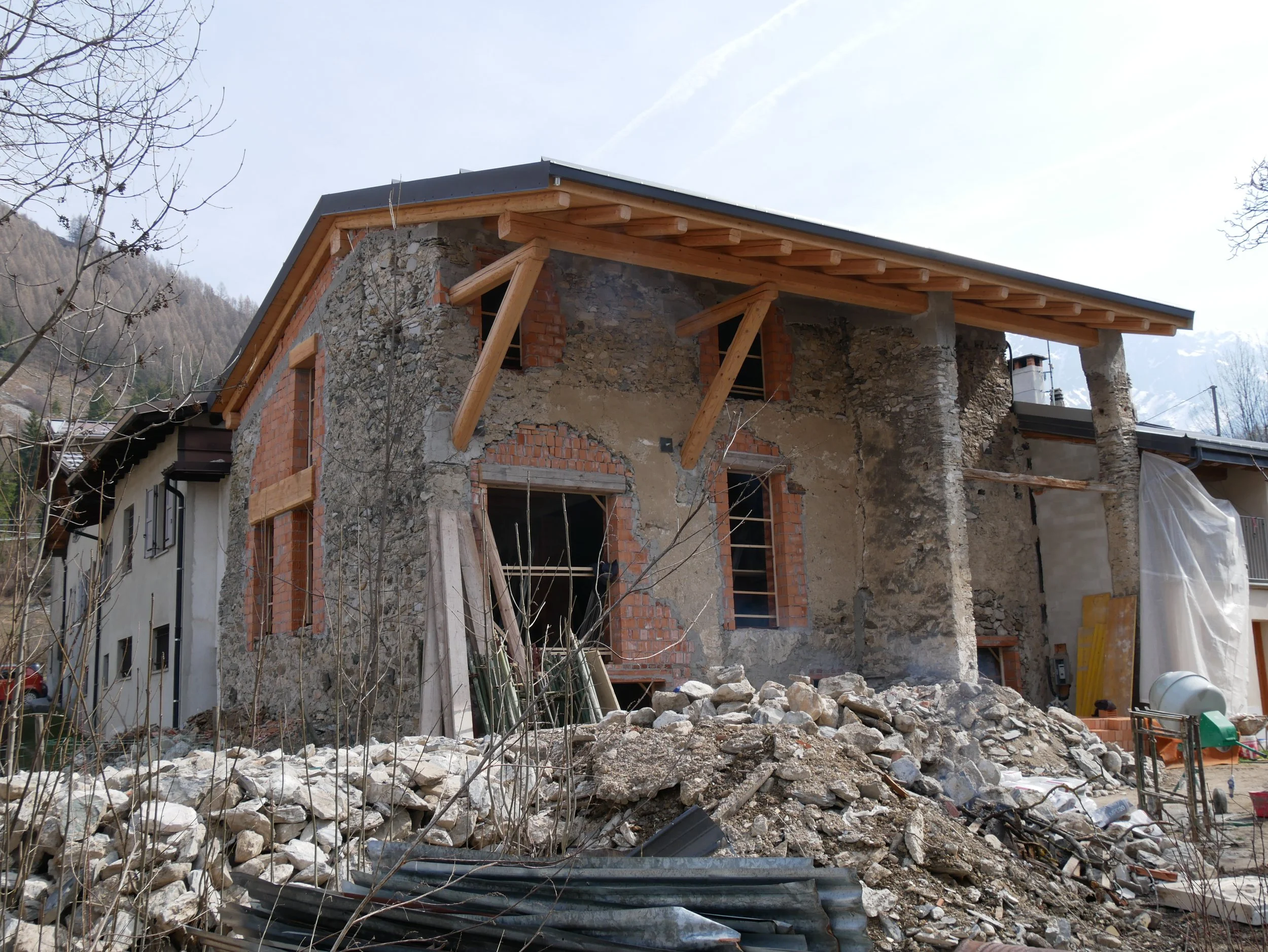 Il progetto riguarda la Ristrutturazione di un fabbricato esistente in pietra, con muratura esterna integra e ben conservata, composto da due volumi adiacenti e collegati internamente. Con questa progettazione si è avuta la consapevolezza di operare su edificio che racchiude in sé numerosi valori, ambientali ed architettonici, tipici delle costruzioni localizzate nel centro storico e attualmente ancora conservate e recuperabili. Si è cercato quindi di realizzare un intervento che da un lato salvaguardia quei valori intrinseci, storico-architettonici, tipici del fabbricato dall’altro non nega una risposta contemporanea alle esigenze estetiche, ma soprattutto funzionali ed igieniche odierne. Si è realizzato quindi un intervento che accosta alla tradizione, l’innovazione, mantenendo completamente la struttura esistente. La ristrutturazione di questo edificio mantiene quindi la riconoscibilità dell’impianto complessivo, ma con la riproposizione di un sistema costruttivo innovativo, almeno in alcuni particolari come la copertura, i terrazzi in legno riparati dagli ampi spioventi dei tetti o le vetrate con andamento verticali inserite nel prospetto laterale che si aprono verso il paesaggio e permettono alla luce di penetrare nei locali abitativi.