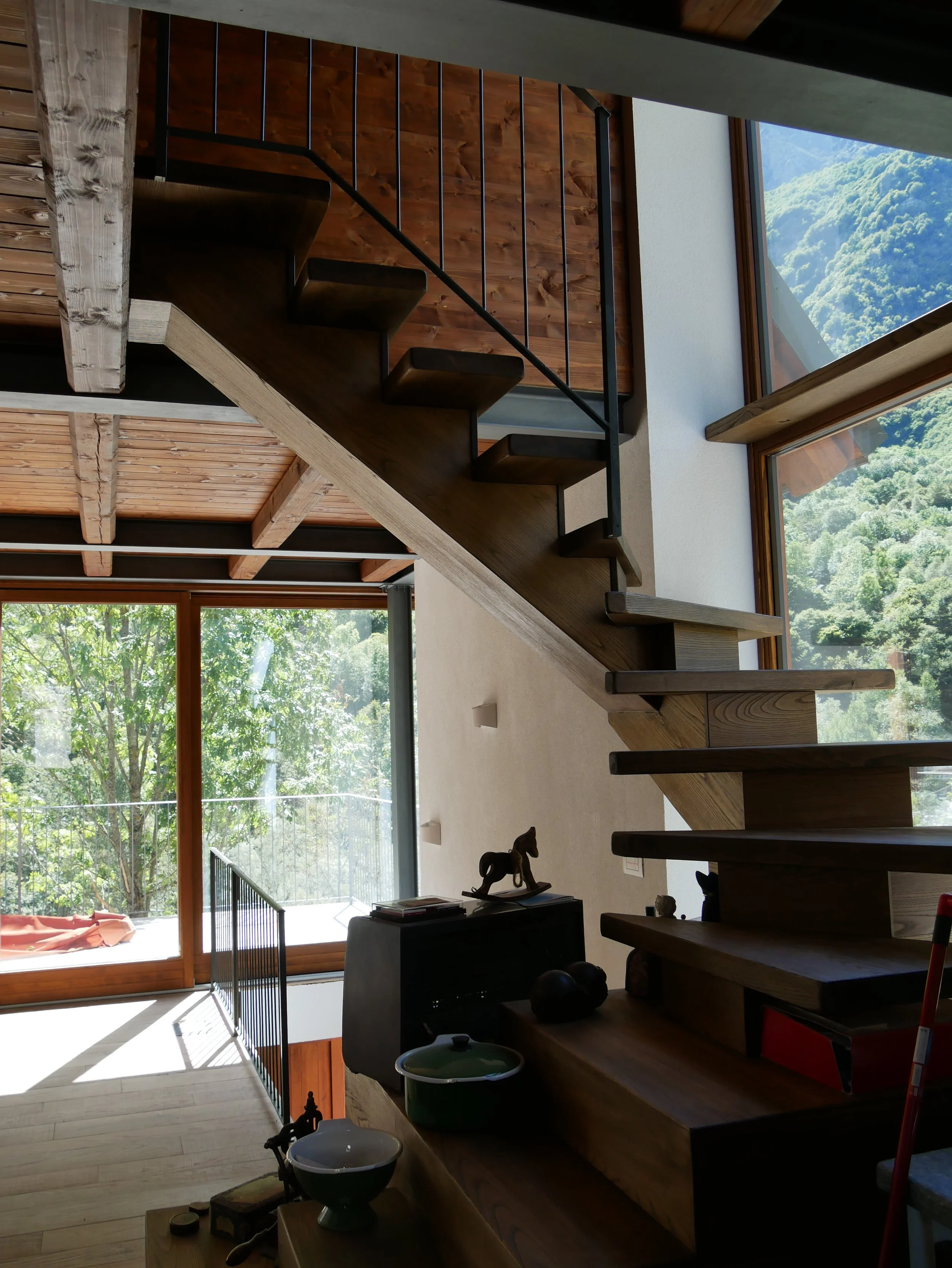 Si è cercato con questa progettazione, di non modificare l’ambiente naturale ed integro circostante, adatto al recupero e alla riqualificazione, senza alterare i caratteri tipologici degli insediamenti tradizionali presenti nella borgata. Abbiamo quindi usato materiali naturali, pietra, legno di larice, ampie vetrate… Il tutto immerso in una spettacolare natura con vista della cima dell’Asta Sottana e piscina naturale nel torrente.