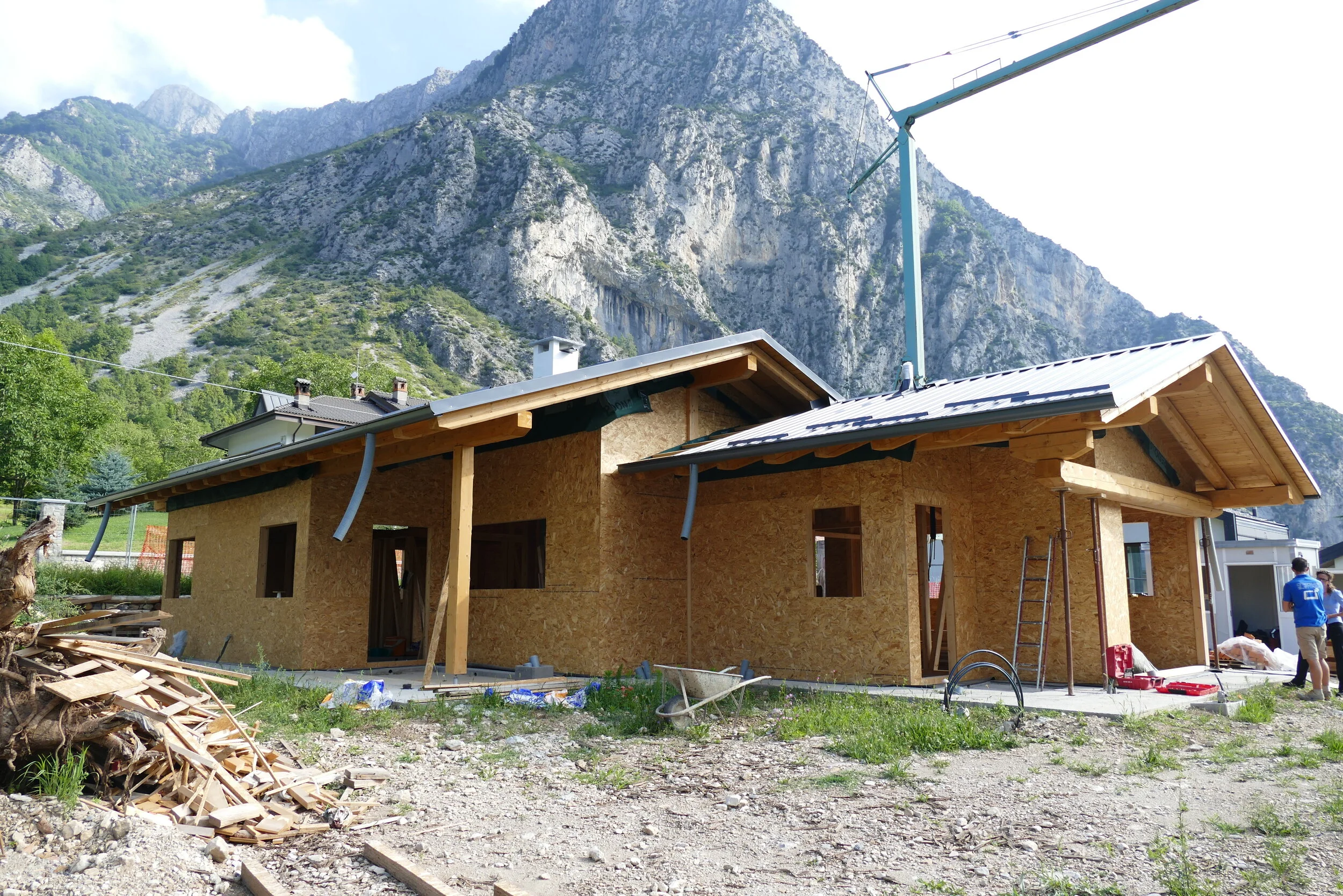 Il progetto di questa villa unifamiliare riprende lo stile di montagna, caratterizzato da informalità e comfort associati al rispetto e all’utilizzo dei materiali locali rustici, rivedendolo in chiave moderna. I fondamenti dello stile montagna sono l’utilizzo di materiali robusti come il legno e pietra, ma soprattutto la ricerca di una sintesi tra spazio domestico e spazio naturale attraverso l’utilizzo di aperture che permettono la comunicazione tra i due. Esteticamente si è scelto di alternare tre blocchi: quello centrale con rivestimento in legno, quello a nord con finitura intonacata e quello più basso in pietra locale a spacco. La parte più a nord del fabbricato viene prevista in intonaco che utilizzerà una coloritura tenue e naturale, traendo ispirazione dal paesaggio naturale e per permettere alle parti realizzate in legno e in pietra di prendere risalto.